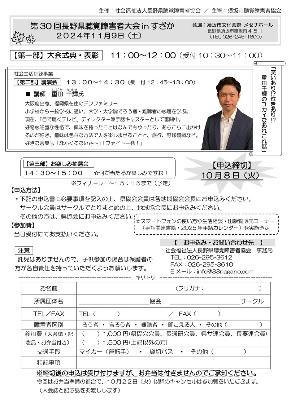 【終了しました】第30回長野県聴覚障害者大会inすざかご案内