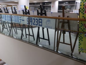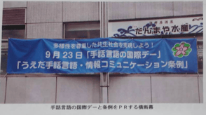 安曇野市役所本庁舎「青い横断幕」(安曇野聴覚障害者協会)
